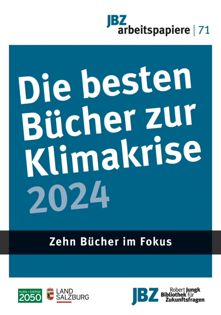 Jährlich stellt das Team der Robert-Jungk-Bibliothek für Zukunftsfragen (JBZ) an die 150 Fachbücher in seinem Buchmagazin für zukunftswesende Debatten – prozukunft vor. Daraus werden jeweils „10 beste Klimabücher des Jahres“ ausgewählt und in einem JBZ-Arbeitspapier publiziert. Die Themen der heurigen Auswahl sind divers: Es geht um ein wachstumsunabhängiges, auf die Grundbedürfnisse fokussiertes Wirtschaften (Katharina Mau: Das Ende der Erschöpfung), um Klimamigration (Gaia Vince: Das nomadische Jahrhundert), um die viel zu geringen MIttel für Klimawandelanpassung für die Länder des Globalen Südens (Friederike Otto: Klimaungerechtigkeit) oder um Arbeit im Kontext der Klimakrise (Simon Schaupp: Stoffwechselpolitik) – um nur einige zu nennen. Das Arbeitspapier kann im Link oben kostenlos downgeloadet werden bzw um 3,90 als Printausgabe bezogen werden.