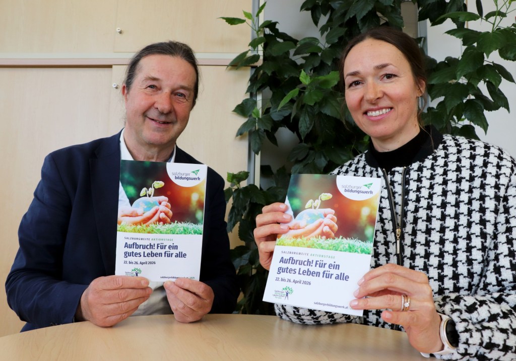 Die 2026 zum zweiten Mal stattfindenden Aktionstage „Aufbruch! Für ein gutes Leben für alle“ laden dazu ein, sich mit Veranstaltungen und Aktionen für eine soziale und ökologische Entwicklung einzusetzen. Das Projekt wird von Mitgliedern des Arbeitskreises „Klima & Nachhaltigkeit“ des Salzburger Bildungswerks sowie der „Vernetzungstreffen der Salzburger Umwelt- und Klimainitiativen“ getragen.