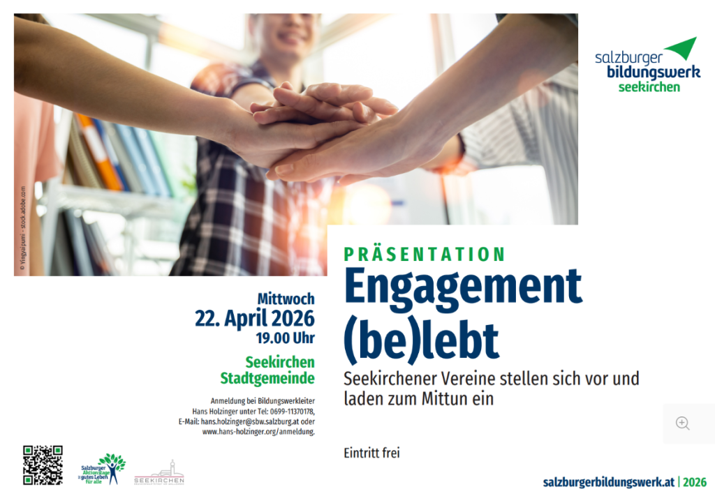 Veranstalter: Salzburger Bildungswerk Seekirchen in Kooperation mit den vorgestellten Vereinen. Freier Eintritt